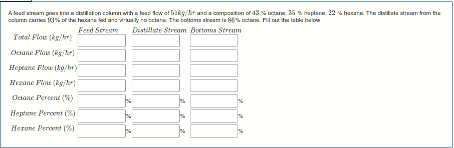 This one is about material balances around a distillation column network.