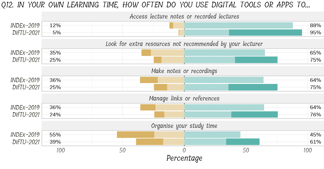 And finally, it seems as the students are maxing-out on digital learning, see the responses to the questions below where there is a marked decrease from INDEx to DifTU.